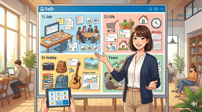 この記事では、Trelloの基本的な操作から、毎日の生活や仕事がちょっと楽になるようなおすすめの活用法まで、やさしく丁寧にご紹介していきますね。