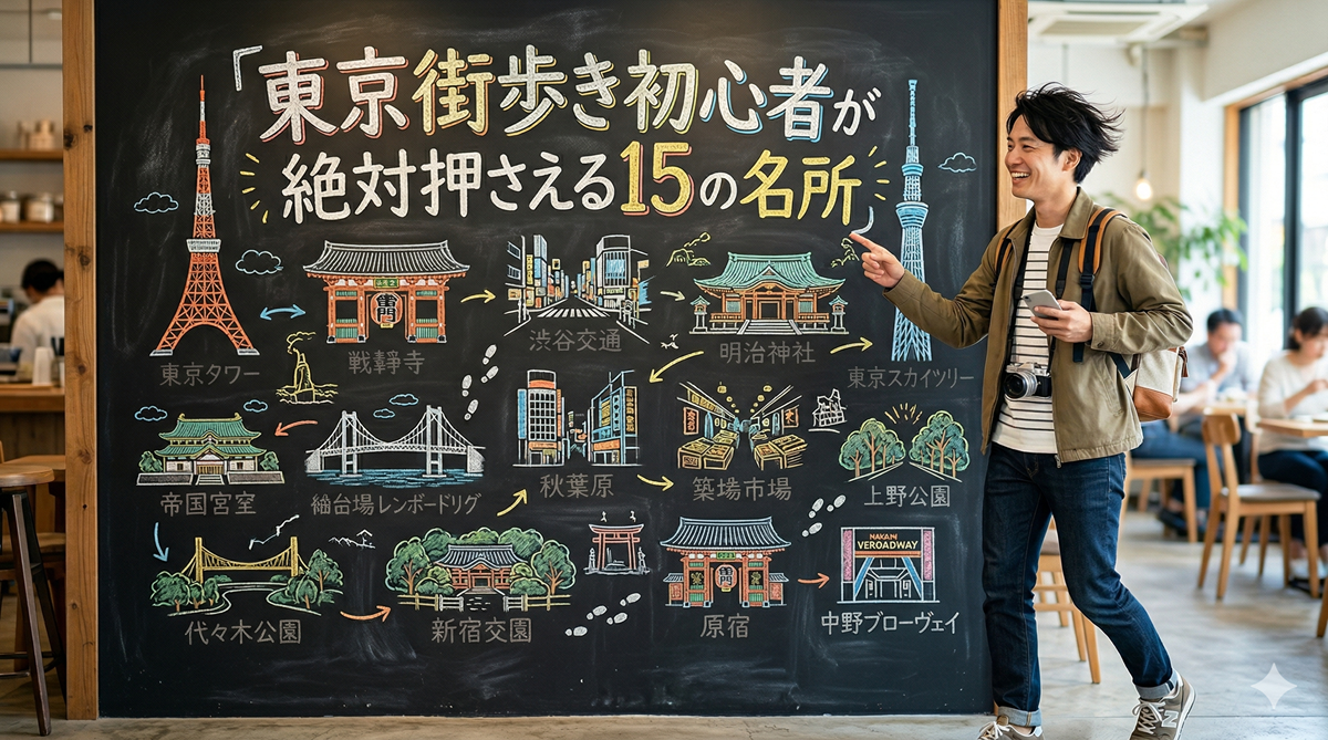 この記事では、「東京街歩き初心者が絶対押さえる15の名所」をわかりやすくご紹介します。
