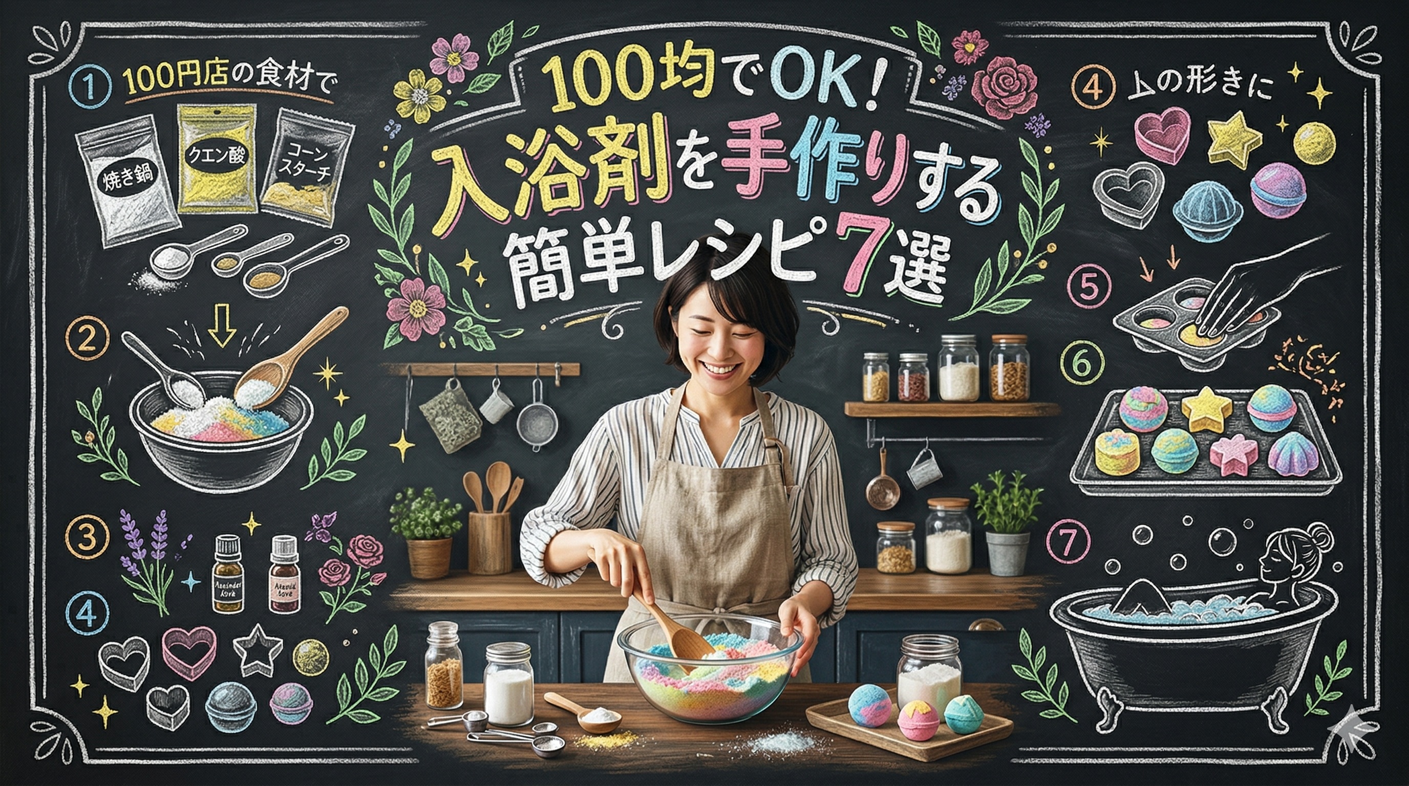 このような悩みは、100円ショップの材料を中心にして入浴剤を手作りすることで整理しやすくなります。